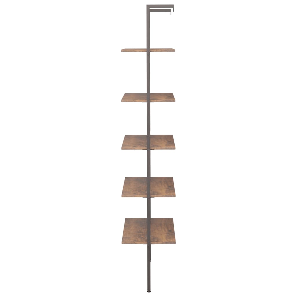 5-nadstropni prislonski regal temno rjav in črn 64x35x185 cm