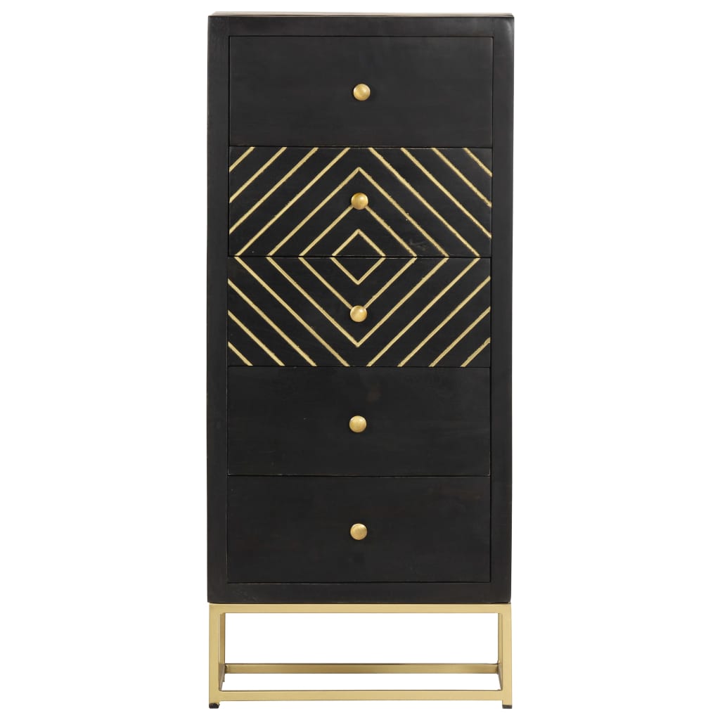 Predalnik črn in zlat 45x30x105 cm trden mangov les
