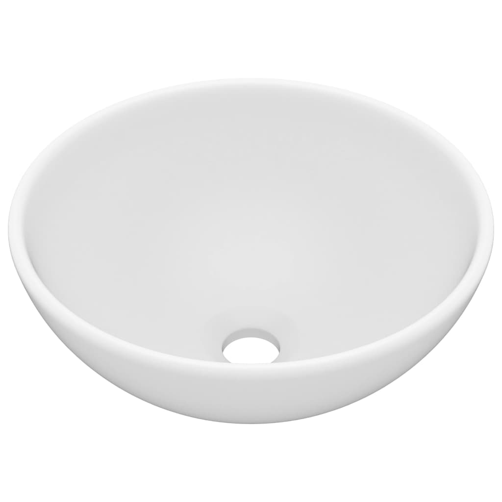Razkošen umivalnik okrogel mat bel 32,5×14 cm keramičen