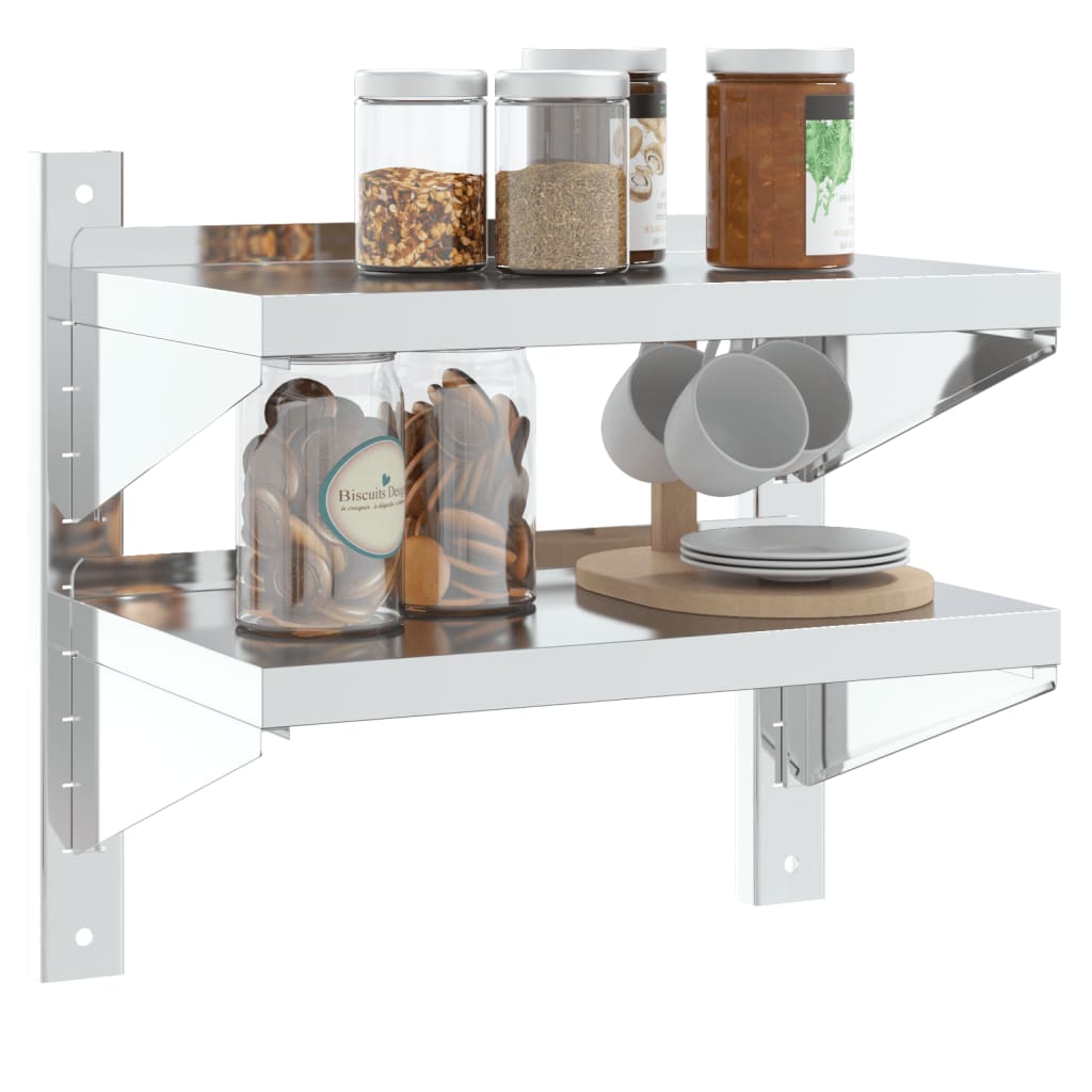 Stenska polica 2-nadstropna 50×23,5×48 cm srebrna nerj. jeklo