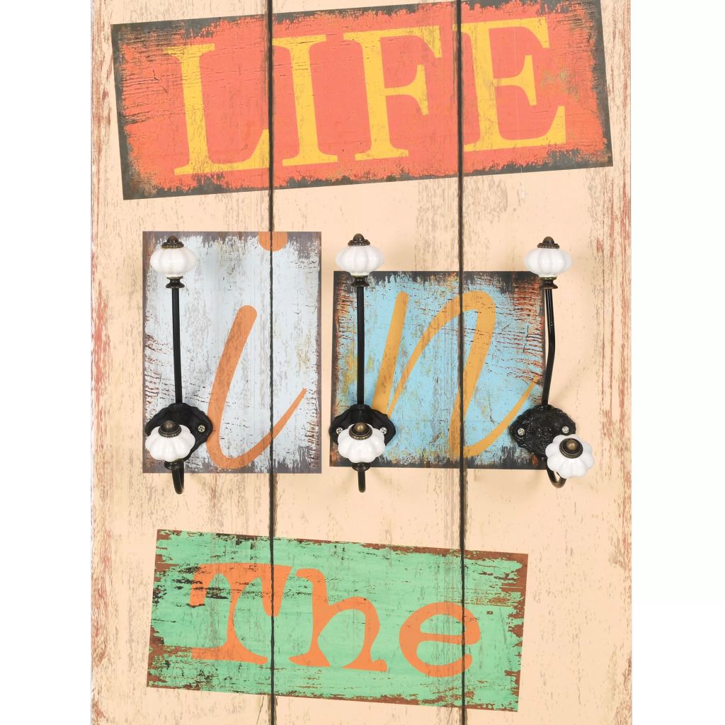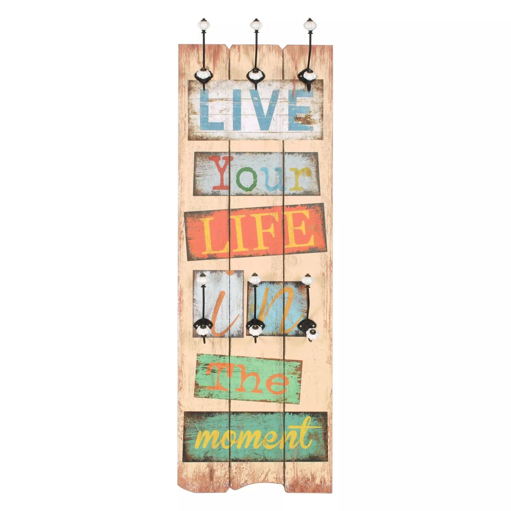 Stenski obešalnik s 6 kljukicami 120×40 cm LIVE LIFE