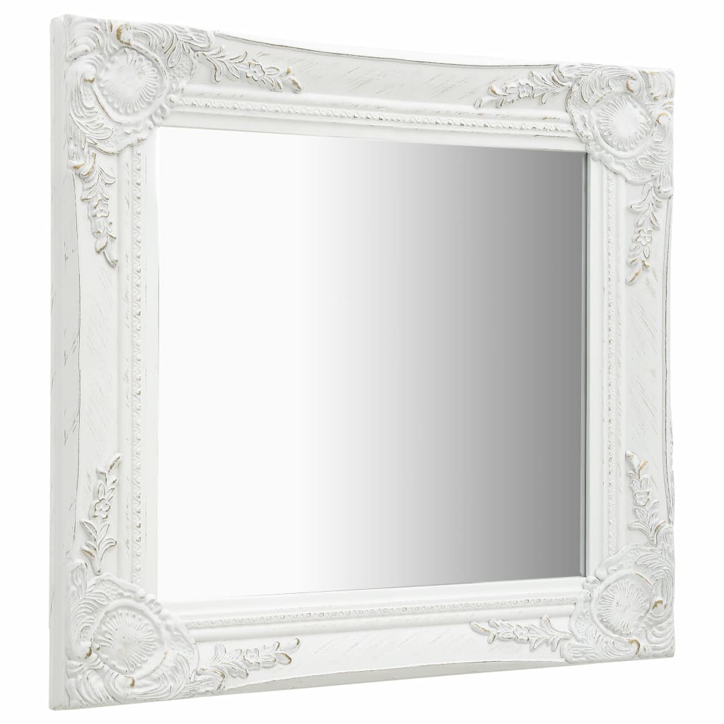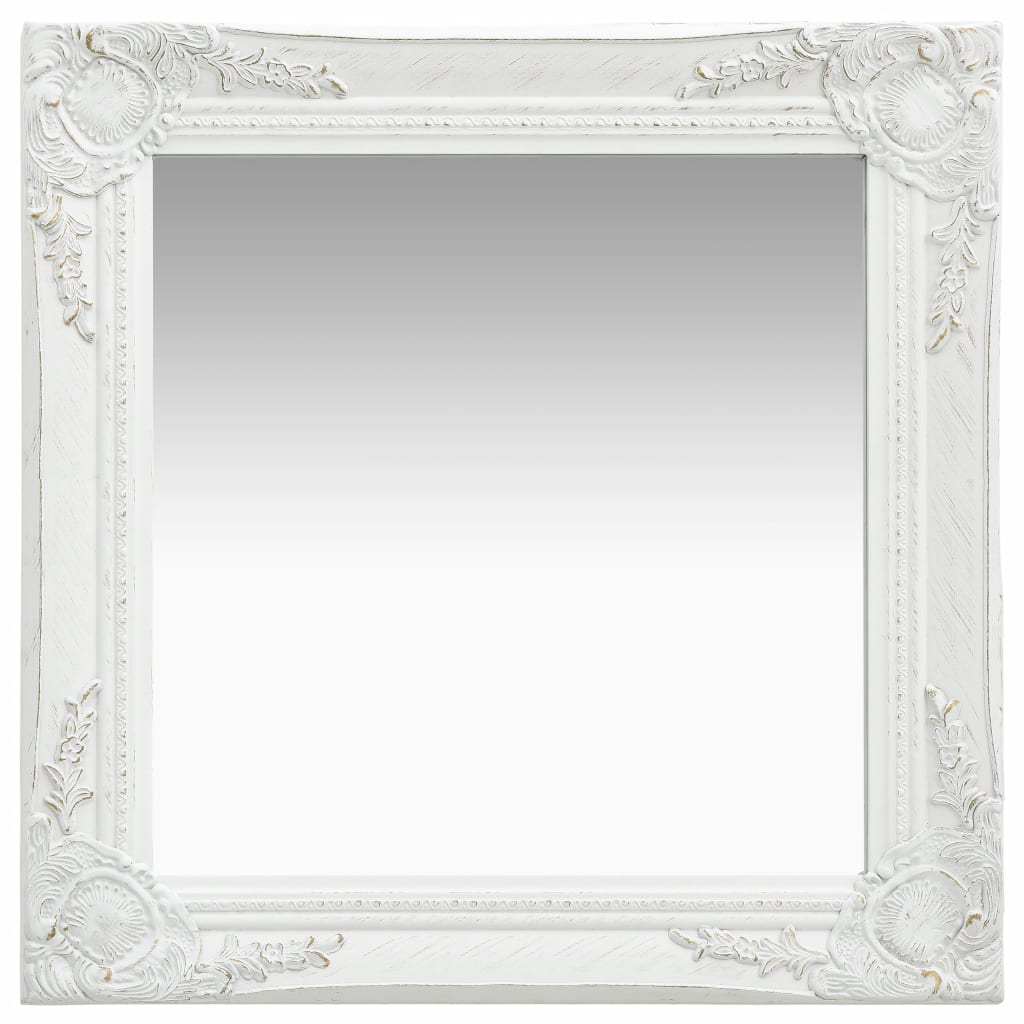 Stensko ogledalo v baročnem stilu 50×50 cm belo